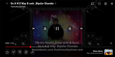 Season 1 - The Dis-Reality Show starring B-Rock a 15-18 year old bipolar rapper armed with a witty play on words and a head flooded with stories he cryptically tells through his haunting rhymes. B-rock aspires to become the world's next best rapper, and no doubt, he's got the talent to accomplish that. Watch B-rock grow up as he creates his first CD appropriately titled “Bipolar Disorder” and his first hit ( I aint going by the rules) get Placed in a major event Wrestling fan fest .. watch as he travels across country to California to the Cow Palace where this song is to be featured in a wrestling fan fest Event, meeting with some legends of the wresting world as well as up and coming stars of the MMA.. only to be disappointed when the events starts to fall apart at the last minute, watch this young star as he fights off the disappointments of show biz and struggles to get trough the next few years of school, his mental illness as well as a laundry list of societal stigmas that go along with mental illness.
